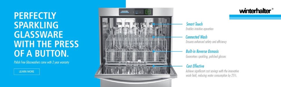 With a history dating back to 1947, Winterhalter has earned its reputation through a commitment to innovation, water and energy efficiency, and durable construction. Their dishwashing systems are built to handle continuous high-volume use while reducing running costs and environmental impact — all with intuitive controls and advanced filtration systems.