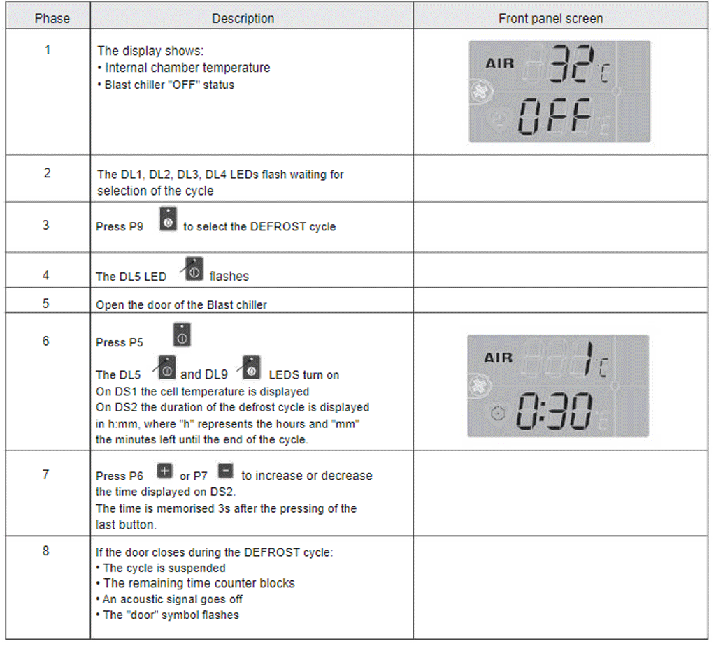 With this cycle, food temperature falls rapidly until +3°Cat the core, with an operation temperature between -15°C and +2°C.